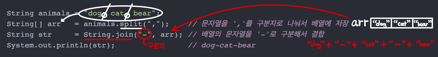 문자열 결합을 할 때, String객체가 계속 새로 만들어지기 때문에, 방법 2처럼 여러 문자열을 계속 더하는 건 성능이 떨어질 수 있다. 그런데 방법 1처럼 String.join()을 사용하면 내부적으로 StringBuffer를 사용해서 조금 더 속도를 향상시키도록 코드가 작성되어 있다. 그래서 문자열 몇개를 간단히 결합하는 건 괜찮지만, 많은 문자열을 결합해야 한다면 String.join()사용을 고려해보쟈.