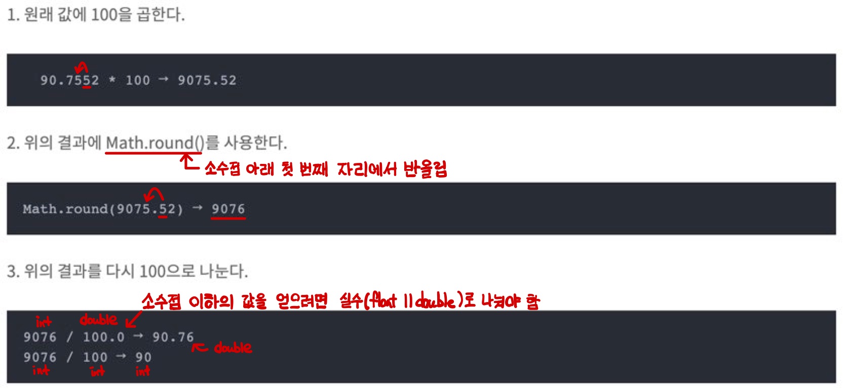 - round()로 원하는 소수점 아래 세 번째 자리에서 반올림하기(복습 차원)