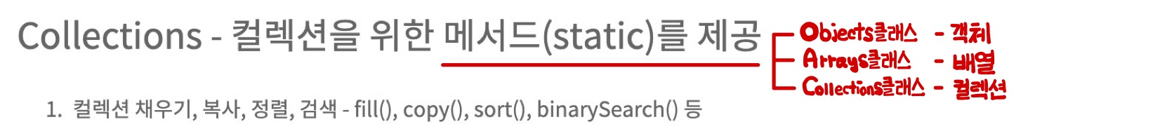 Collections - 컬렉션을 위한 메서드(static)를 제공