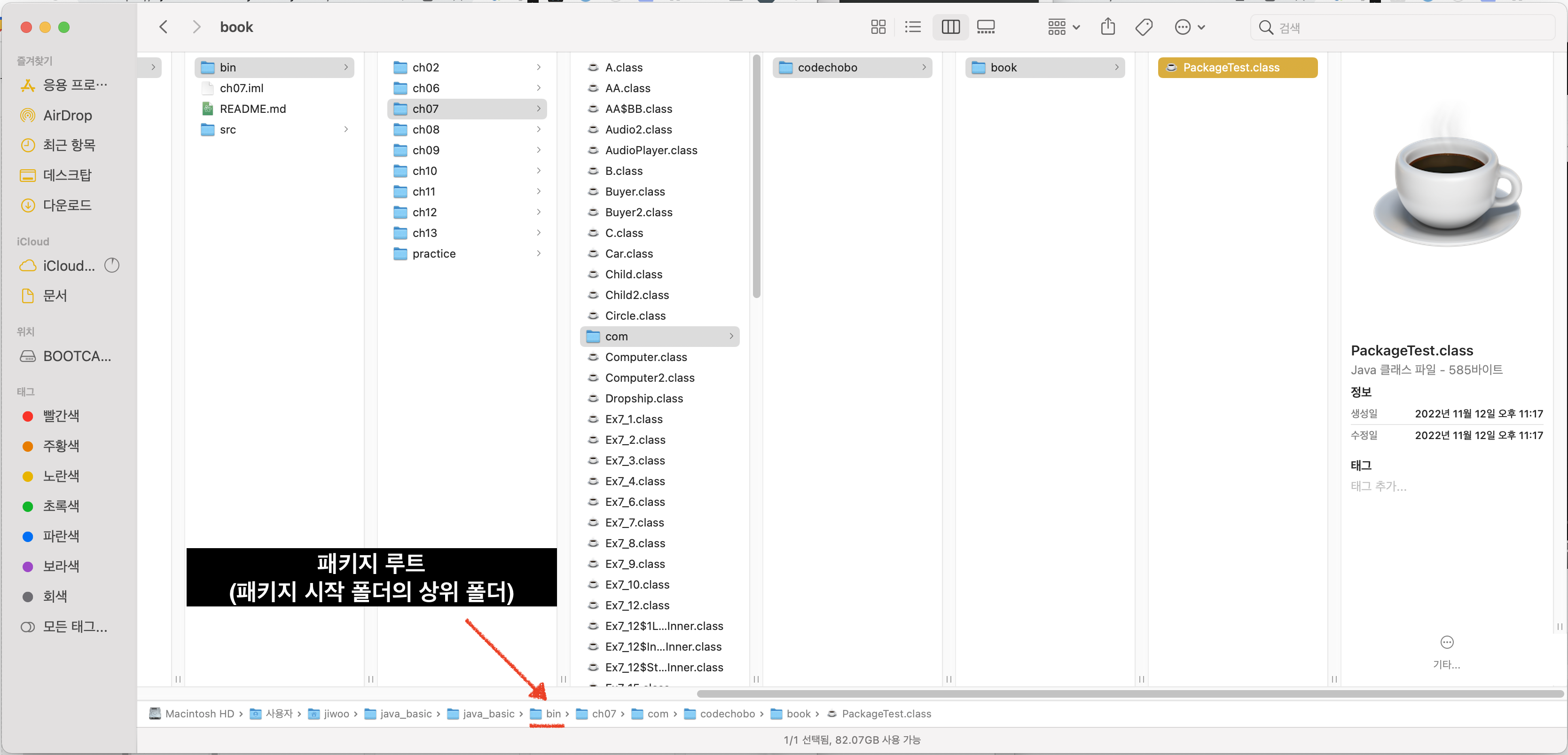 여기로 이동을 해야 PackageTest.class 파일을 찾을 수 있다.