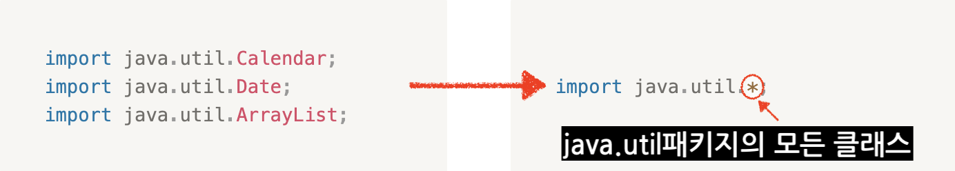 import 패키지명.*; // 패키지에 속한 모든 클래스