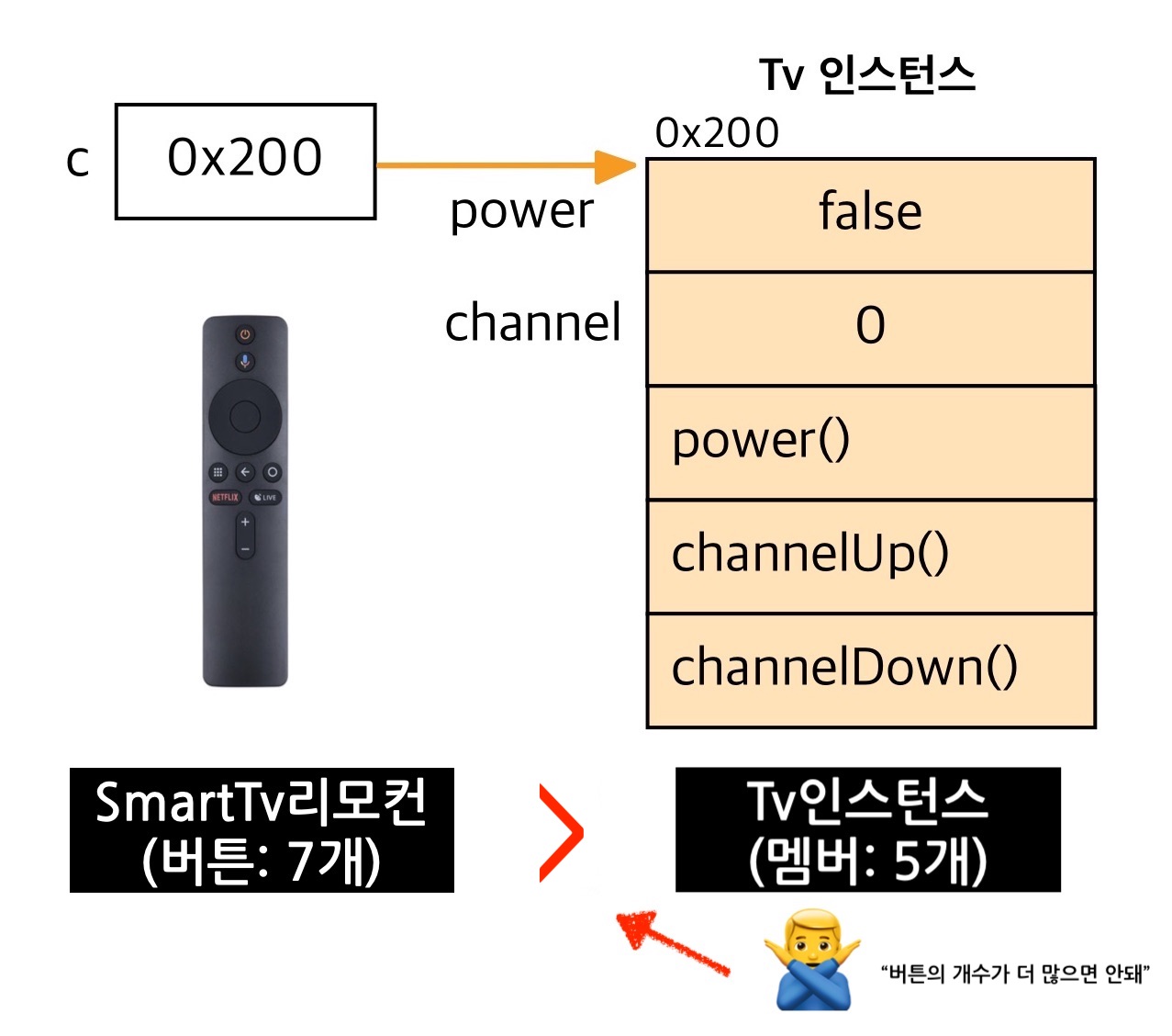 리모컨으로 인스턴스에 없는 기능을 사용하면 에러가 발생한다.