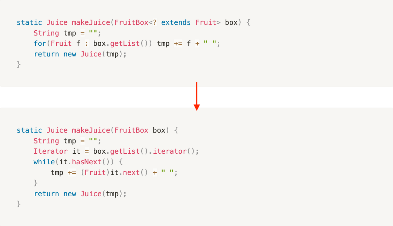 static Juice makeJuice(FruitBox<? extends Fruit> box) { ... }