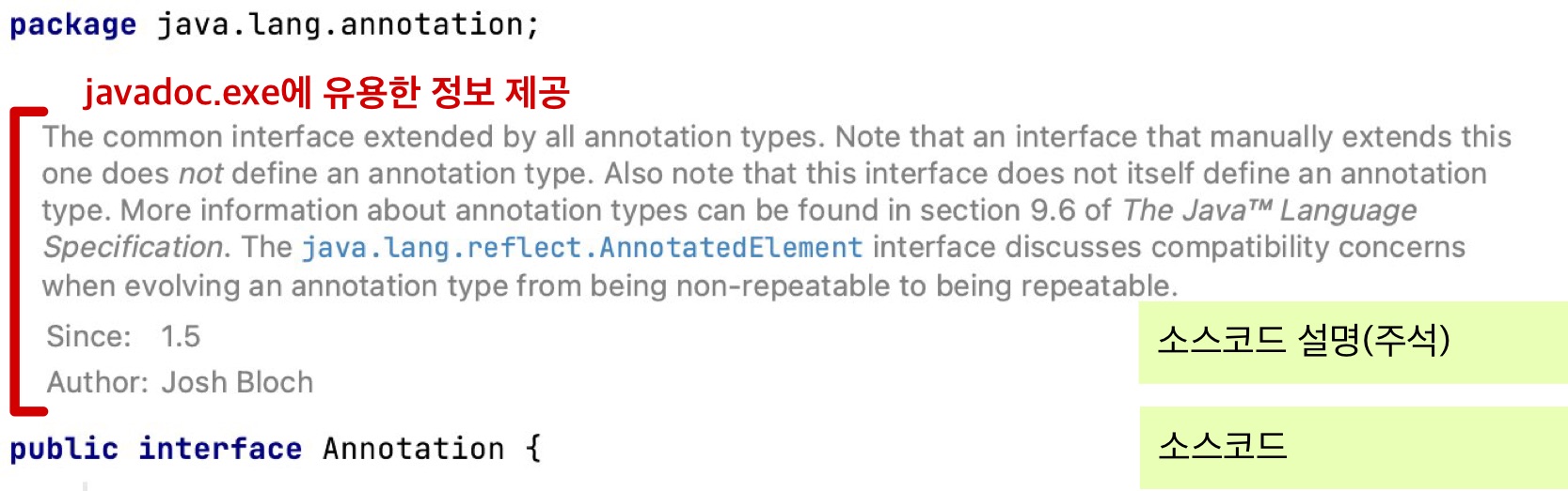 - Annotation은 모든 애너테이션의 조상이지만 상속은 불가