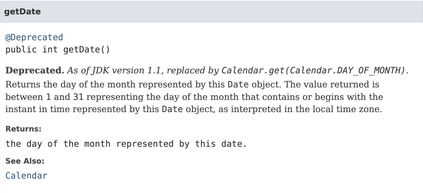 - @Deprecated의 사용 예, Date클래스의 getDate()