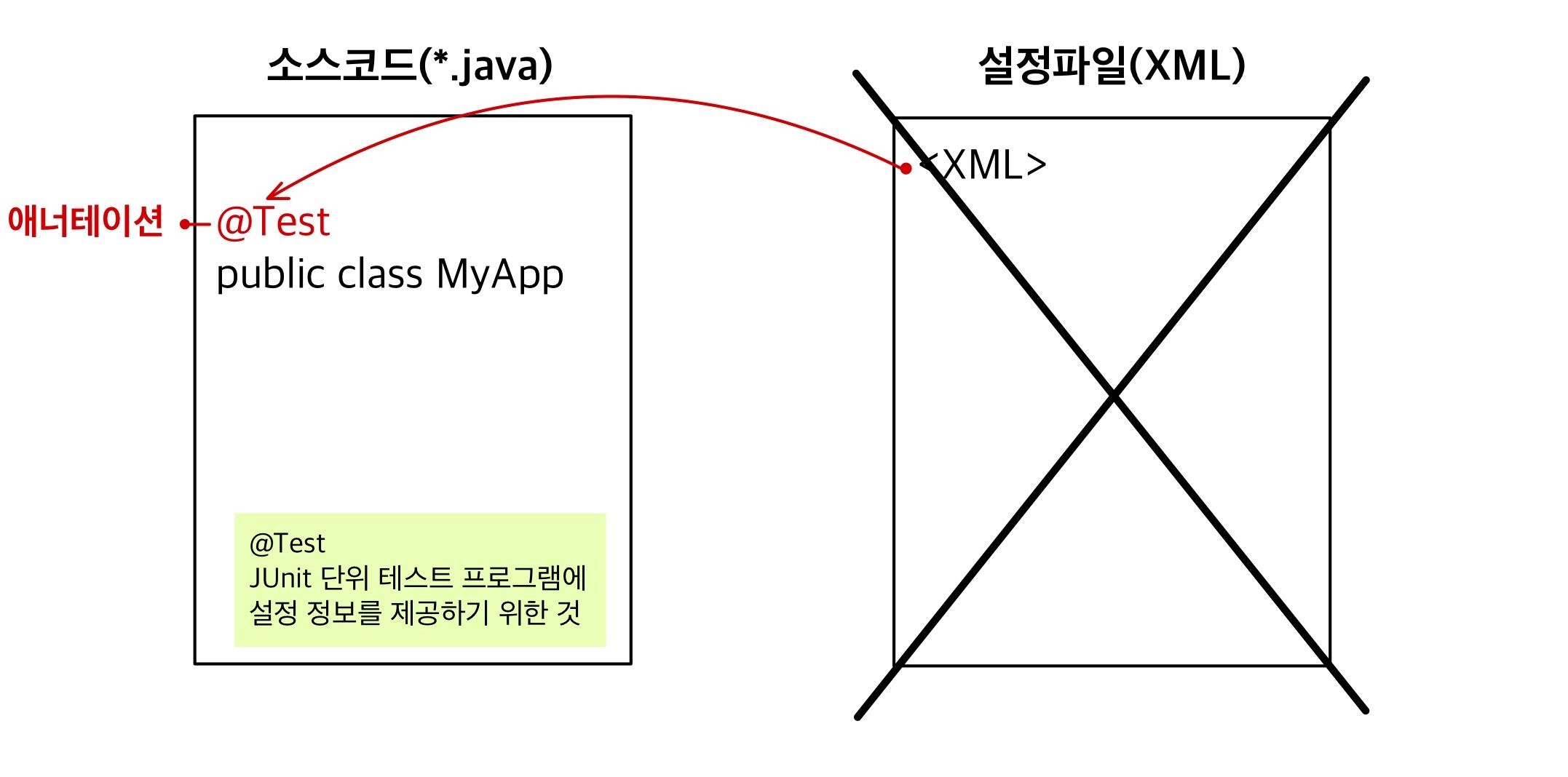 @Test // 이 메서드가 테스트 대상임을 테스트 프로그램에게 알린다.