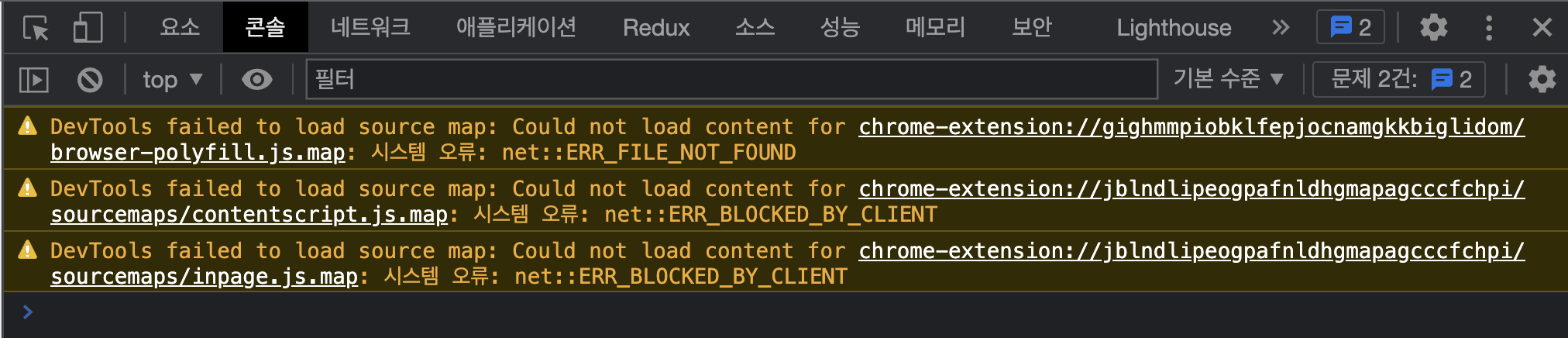 장바구니 페이지 이동 시, 크롬 개발자도구 '콘솔' 창에 에러메시지가 발생한다는 제보였다.