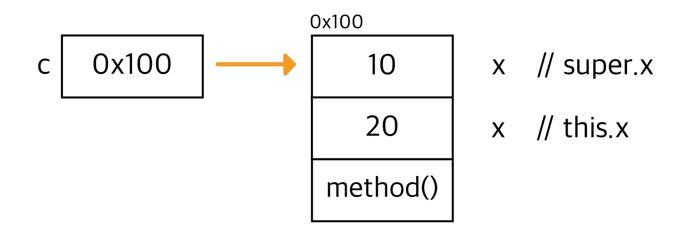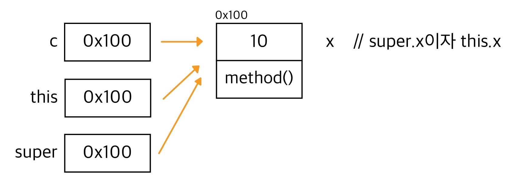 this.x와 super.x가 같은 변수를 가리키는 경우