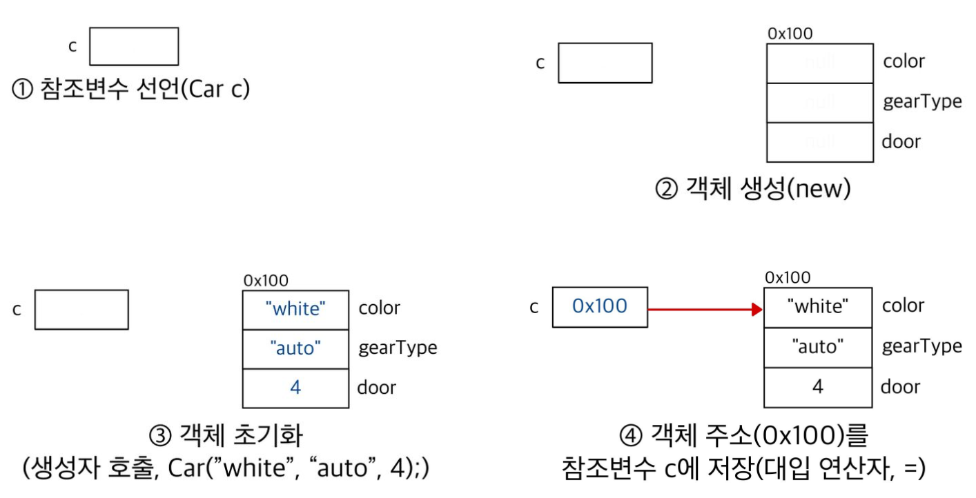 3. 객체 초기화(생성자 호출, Car("white", "Auto", 4))